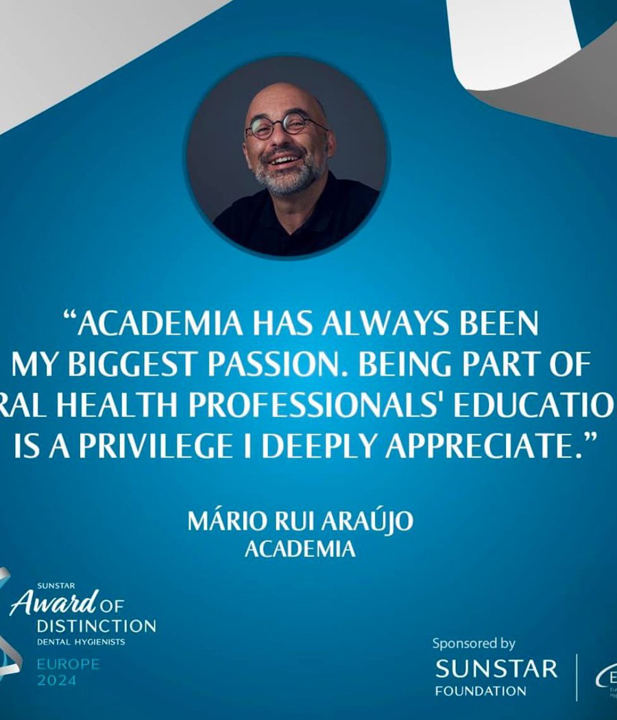 O nosso Professor Mário Rui Araújo, ganhou o Prêmio Sunstar de Higienistas Dentais Distintivos da Europa na categoria Academia!
